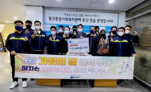허치슨포트부산 축구동호회·자원봉사대는 지난 25일 가정의 달을 맞아 지역 내 아동을 위해 부산 동구종합사회복지관에 간식 300세트를 전달했다.
