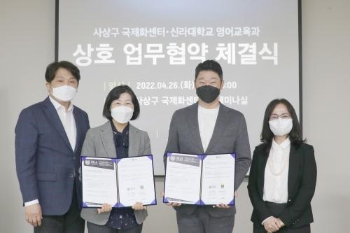 신라대학교(총장 김충석)와 사상구 국제화센터(센터장 김태훈)가 최근 실무 역량을 갖춘 영어교사 양성을 위한 업무 협약을 가졌다 . 남정미 신라대 영어교육과 학과장은 “이번 협약을 통해 학생들에게 영어교사로 임용되기 전에 인턴 기회를 가지면서 경력을 쌓을 수 있는 좋은 기회를 제공할 것”이라고 말했다. 임원철 선임기자