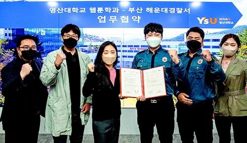 와이즈유 영산대학교(총장 부구욱) 웹툰학과는 26일 부산 해운대경찰서와 여성·청소년 등 사회적 약자를 대상으로 한 범죄 예방을 위한 산학협정을 체결했다. 이번 산학협정은 불법촬영, 가출 청소년의 비행과 범죄 등에 대한 경각심을 일깨우기 위해 웹툰학과가 브랜드툰을 제작하는 방식으로 추진된다. 김상훈 기자