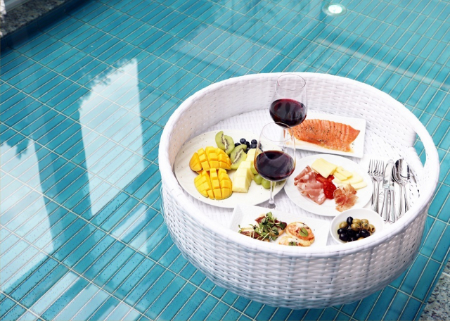 △메리어트 인터내셔널의 모던 럭셔리 호텔 'AC 호텔 바이 메리어트 서울 강남'이 6월 30일까지 '플로팅 다이닝 패키지'를 판매한다. AC 호텔 강남의 풀 객실 2종, '프리미어 풀 스위트'와 '프리미어 풀룸'에서 즐길 수 있는 서비스다. 객실 내 수영장 안에서 와인과 카나페, 각종 디저트 등 다양한 메뉴를 즐길 수 있다. 프리미어 풀 스위트와 프리미어 풀룸은 AC 호텔 강남의 주력 객실이다. 서울 4성급 호텔로서는 드물게 객실 내 테라스에 개인 프라이빗 풀을 갖추고 있다. 이 객실들은 오픈 전부터 입소문을 타며 완판 대란을 일으켰다. 이번 패키지는 AC 호텔의 최상위 객실과 함께 제공되는 독특한 다이닝 패키지다. 메뉴는 디저트·브런치·햄앤치즈 등 세 가지 콘셉트로 제공된다. 디저트 콘셉트는 요크셔 브레드, 버터, 바스크 치즈케이크, 마카롱, 과일 푸딩으로 구성됐다. 브런치에는 토마토 브레드, 감바스, 감자튀김, 햄버거, 홈메이드 바비큐 소스를 제공한다. 햄 앤 치즈는 프로슈토, 하몽, 치즈, 과일, 훈제연어 카나페 등이 제공된다. 세 가지 콘셉트 모두 프랑스 남부 랑그독 지역의 와인 '라 크라사드' 와인을 기본으로 제공한다. 각자 다른 매력을 지닌 레드 와인 '라 크라사드 블랙'과 화이트 와인인 '라 크라사드 샤르도네' 중 선택할 수 있다. 플로팅 다이닝 서비스는 호텔 체크인 후 오후 3시 30분부터 6시 30분 사이 원하는 시간에 제공된다.