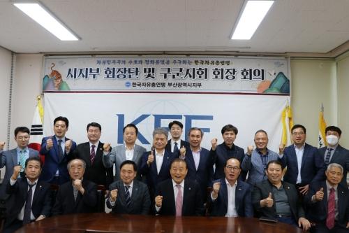한국자유총연맹 부산광역시지부(회장 양재생)는 지난달 28일 부산자유회관(부산통일관) 3층 회의실에서 양재생 회장을 비롯해 구대원 부회장, 이인 부회장과 16개 구·군지회 회장이 참석한 가운데 회장단 회의를 열었다. 양 회장은 “회장단 회의를 통해 만나 뵙게 돼 너무 반갑고 기쁘다”며 “지역사회에 도움이 되는 좋은 일들에 적극 참여하는 구·군지회 회장들께 감사 말씀을 전한다”고 말했다. 김상훈 기자