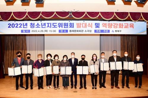 부산 동래구청(구청장 권한대행 임창근)은 지난달 28일 청소년의 건전한 육성과 선도 활동을 위한 청소년지도위원회 발대식과 역량강화 교육을 했다.