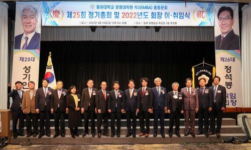 동아대학교 경영대학원 석사(MBA) 총동문회는 지난달 29일 부산 농심호텔에서 제25회 정기총회 및 2022년 회장 이·취임식을 개최했다.