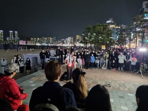 시민들은 마스크를 쓴 채 큰 목소리로 노래를 따라 부르기도 했다. 경기도에서 부산으로 여행왔다는 한 여성은 “이런 밤바다 감성을 회복한 것 자체가 벅차다”며 “밤늦게 거리에서 노래를 듣고 흥얼거릴 수 있는 상황이 신기하다”고 말했다.