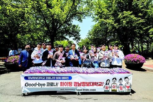 경남정보대학교(총장 김대식) 총학생회와 대의원회가 코로나19 회복 캠페인을 열었다. 이날 행사는 김대식 경남정보대 총장과 학생들이 교내 광장에서 직접 준비한 비타민, 마스크와 자가진단키트 등 코로나 일상 회복을 위한 용품을 학생들에게 전달하는 방식으로 진행됐다. 김 총장은 “3년간 캠퍼스의 낭만을 즐기지 못한 학생들이 코로나 위기를 극복하고 활기찬 캠퍼스 생활을 즐길 수 있길 기원한다”고 밝혔다. 김상훈 기자
