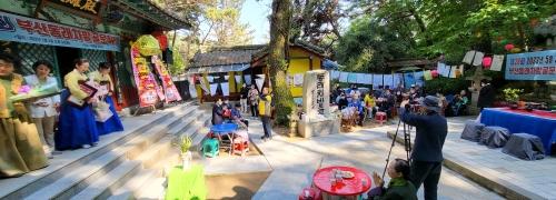 부산동래차밭골문화원(원장 양은순)은 지난 3일 금어사에서 차인과 문학인이 참석한 가운데 숲길깃발시화전 등 ‘제28회 동래차밭골문화제’를 개최했다.