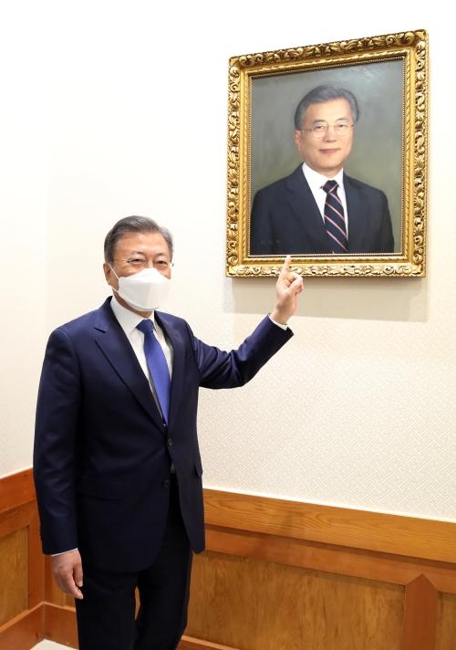 그는 “2017년 대통령에 당선되신 직후 뉴스에 자주 올라왔던 사진을 보고 초상화를 그렸다”며 “당선 때의 감동을 오래도록 간직하셨으면 하는 마음 때문이었다”고 말했다. 작품을 완성하는 데 1개월 남짓 걸렸다고 한다.