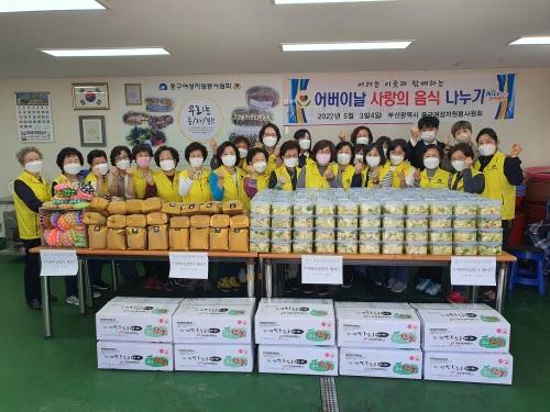 부산 중구 여성자원봉사원회(회장 조재숙)는 지난 4일 어버이날을 맞이해 홀로어르신 200세대를 대상으로 ‘어버이날 사랑의 음식 나눔’ 행사를 개최했다.