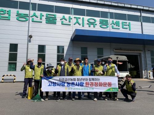 경남 진주금산농협(조합장 신정호)과 농협 청년부 회원들이 9일 금산면 장사리 일대에서 쓰레기 줍기, 잡초 제거 등 환경정화 봉사활동을 폈다.