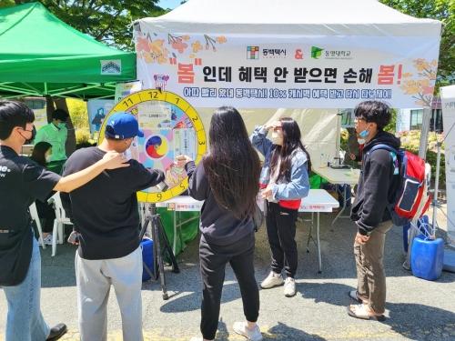 부산개인택시운송조합과 코나아이가 지난 3, 4일 동명대에서 학생들에게 동백택시 이용법을 알리고 할인쿠폰과 기념품을 증정했다. 동백택시는 동백전 플랫폼 인지도를 높여 지역경제를 활성화할 수 있도록 이달 동명대를 시작으로 부산외국어대학교 등 지역 대학과 지속적으로 프로모션을 이어나갈 예정이다. 코나아이 제공