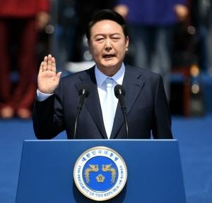 윤 대통령은 이날 오전 서울 여의도 국회 앞마당에서 진행된 취임식에서 “헌법을 준수하고 국가를 보위하며 조국의 평화적 통일과 국민의 자유와 복리의 증진 및 민족문화의 창달에 노력하겠다”는 취임 선서를 통해 ‘윤석열 정부’의 개막을 알렸다. 이날 취임식에는 국내외 귀빈과 국회와 정부 관계자, 각계 대표, 일반국민 등 4만 1000여 명이 참석했다. 배우자인 김건희 여사도 3월 9일 대선 이후 공식석상에 처음 등장했다.
