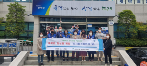 연제구 연산1동(동장 조용화)은 4일 자유총연맹(회장 신영준) 회원 및 동 직원 등 10여 명이 참여한 가운데 관내 주요 불결지 등을 대상으로 코로나19 거리두기 해제에 따른 새로운 일상을 위한 ‘도시환경정비의 날’을 실시하였다.