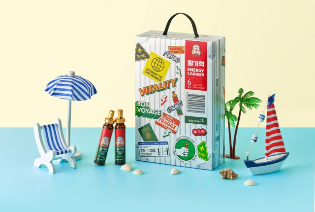 △KGC인삼공사가 위드코로나 이후 여행 수요 증가에 맞춰 면세전용 '정관장 활기력 에너지캐리어'를 선보였다. 지치지 않는 여행을 위한 필수템이란 콘셉트로, 여행용 캐리어를 연상시키는 재치 있는 디자인에 '활기력(20mL) 20병'으로 구성된 면세전용 제품이다. 제품과 함께 동봉된 활기력 데코스티커는 개인의 취향에 따라 캐리어, 틴케이스, 휴대폰 케이스 등 다양한 소품을 자유롭게 꾸미는 데에 사용할 수 있다. 또 활기력을 다 섭취하고 남은 패키지는 기념품 보관함, 수납함 등 다양한 용도로 활용 가능하다. 활기력은 6년근 홍삼농축액에 생강, 대추, 구기자, 오미자, 황기 등 전통소재와 비타민 B, C를 배합한 에너지 충전 앰플로, 한 병 섭취만으로 간편하게 기력을 보충할 수 있어 여행지에서 각광받는 제품이다.
