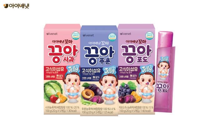 △영유아 식품 전문기업 아이배냇이 식이섬유가 풍부한 스틱 젤리 신제품 '꼬마 끙아 푸룬'을 출시했다. 비타민C를 비롯한 여러 비타민과 무기 영양소, 섬유소 등이 풍부하게 함유된 푸룬, 항산화 활성이 높은 안토시아닌과 비타민, 무기질이 풍부한 자색고구마가 함유된 스틱젤리 제품이다. 기존 사과맛, 포도맛 제품과 함께 아이의 취향에 따라 골라 먹일 수 있는 선택지가 넓어졌다. 제품 1개(100g, 5개입)당 배변활동에 도움을 줄 수 있는 것으로 알려진 식이섬유가 6g씩 풍부하게 들어 있다. 장내세균인 비피더스균을 증식시켜 정장작용을 포함한 여러 가지 생리적 효과에 도움을 줄 수 있다고 알려진 프락토 올리고당도 함유돼 있다. 스틱 형태의 1입 개별포장으로 아이가 언제 어디서든 간편하게 위생적으로 먹을 수 있다. 평소에는 탱글탱글한 젤리로, 얼리면 시원한 아이스 젤리로도 먹을 수 있다. 착색료와 합성향료를 첨가하지 않았고, HACCP 인증을 받아 아이들에게 보다 안심하고 먹일 수 있다.
