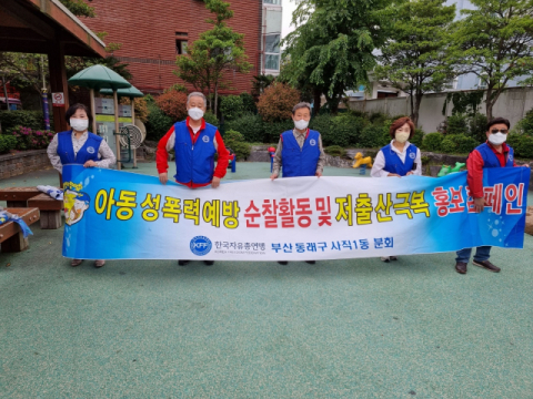 부산 동래구 사직1동 행정복지센터(동장 조미숙)는 한국자유총연맹 동래구지회 사직1동분회(회장 김원빈) 주관으로 7일 관내 사직놀이공원 등에서 아동지킴이 순찰활동 및 저출산 극복 홍보 캠페인을 실시했다고 밝혔다.