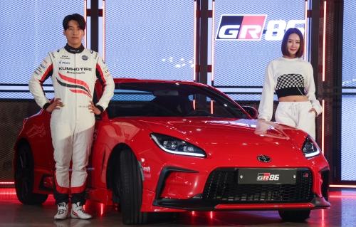 토요타가 16일 신형 스포츠카 GR86 공개 행사에서 차량을 선보이고 있다. GR86은 10년 만에 출시되는 ‘토요타 86’의 후속 모델이다. 연합뉴스