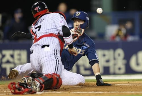 LG 포수 유강남의 포구 실책으로 홈인하는 NC 박건우. 연합뉴스한국프로야구 KBO리그에서도 구단이나 선수가 공식 기록원의 기록 결정에 이의 신청할 수 있는 제도가 도입됐다.