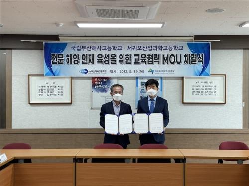 부산해사고등학교(교장 정재근)는 지난 19일 전문 해양 인재 육성과 맞춤형 전문기술 부사관 교육 활성화를 위해 서귀포산업과학고와 교육협력 협약서를 체결했다.