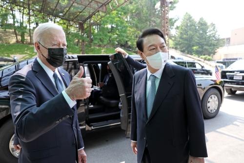지난 20일 바이든 대통령이 한국에 도착한 직후 경기도 평택 삼성 반도체 공장에서부터 이뤄진 두 정상의 만남은 두 나라의 가치 공유를 바탕으로 안보는 물론 경제, 대외관계 등 포괄적인 협력으로 이어졌다. 바이든 대통령은 첫 연설에서 “우리가 필요한 것을 동맹과 파트너로부터 더 확보하고 공급망의 회복력을 강화하는 게 중요하다”면서 “그것이 내가 취임 후 첫 아시아 순방으로 한국에 온 이유”라고 밝혔다.