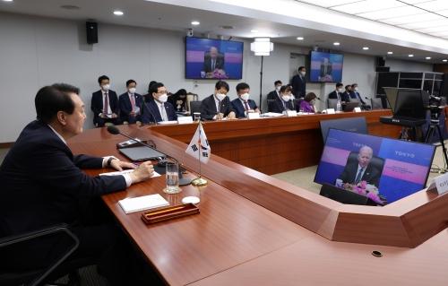 윤석열 대통령이 23일 용산 대통령실 청사에서 인도태평양경제프레임워크(IPEF) 고위급 화상회의에 참석하고 있다. 대통령실 제공미국이 주도하는 ‘반중(中) 연대’ 성격의 ‘인도·태평양 경제프레임워크(IPEF)’가 23일 오후 공식 출범했다.