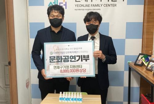 사회복지법인 단우복지재단(이사장 정찬률)은 최근 1000만 원 상당의 사회공헌음악회 티켓과 방역 소독물품을 부산 연제구가족센터에 전달했다.