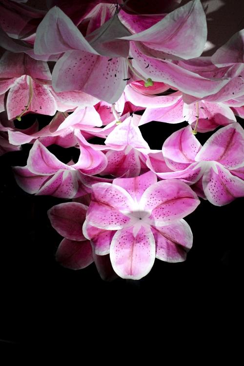 부산프랑스문화원 아트스페이스 제공거대한 꽃이 피었다. 유미연 작가는 전시장 천장을 오리엔탈백합으로 채웠다. 거대한 오리엔탈백합은 생화가 아닌 조화다.