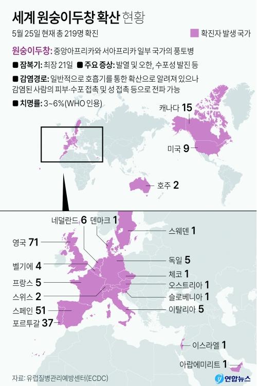 지난 수십 년간 중·서부 아프리카의 풍토병으로 알려진 원숭이두창은 지난 7일 영국에서 첫 발병 보고가 들어온 이래 유럽·북미·중동·호주 등으로 확산하며 코로나19 이후 또 다른 보건 위기 우려를 사고 있다. WHO는 전날까지 비풍토병 지역 19개국에서 300여 건의 확진 사례가 나온 것으로 집계했다. 다만, 마이크 라이언 WHO 긴급대응팀장은 최근 “항상 염두에 두고 있으나 아직은 원숭이두창과 관련한 긴급위원회를 가동하는 방안을 고려하고 있지 않다”고 밝힌 바 있다. 이현정 기자·일부연합뉴스
