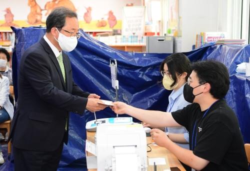 부산시교육감 선거 김석준(왼쪽) 후보와 하윤수 후보가 27일 오전 각각 부산진구 성서초등과 부전1동주민센터에 마련된 사전투표소에서 투표하고 있다. 정대현 기자 jhyun@이틀 앞으로 다가온 6·1 지방선거에서 민선 부산교육감 첫 2파전을 펼치는 김석준 후보와 하윤수 후보는 정책·공약을 놓고도 막판 경쟁이 치열하다. 김 후보는 △미래교육과 수업혁신 △글로벌 창의융합 인재 양성 △특별한 감성·인성 교육 △복지·안전 교육환경 등 4대 분야 등 72개 세부 공약을 내놨다. 하 후보는 △학력신장 △인성교육 △미래교육 △혁신소통 △교육복지 △안전보건 등 6대 분야에 걸쳐 82개 공약을 선거공보에 실었다.