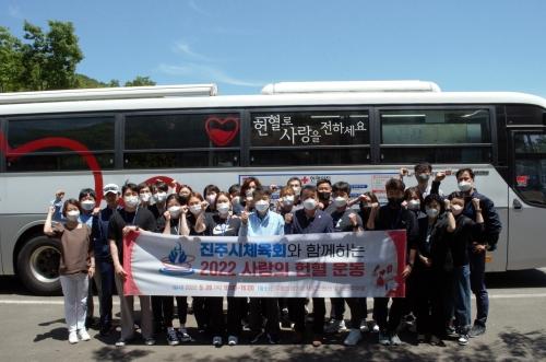 경남 진주시체육회(회장 김택세) 임직원과 회원종목단체 회원 등 50여 명은 지난 26일 ‘2022 사랑의 헌혈 운동’에 동참했다.