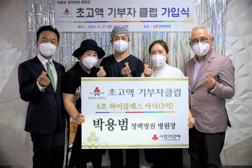 청맥병원 박용범 병원장이 부산사랑의열매의 6번째 초고액 아너 소사이어티 회원으로 가입하며 3억 원의 성금 기탁을 약정했다.