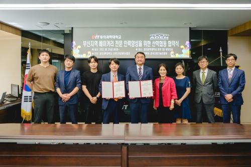 동의과학대학교(총장 김영도·가운데)는 27일 와이제이와이푸드(대표 최용진)와 ‘베이커리 전문 인력양성을 위한 산학협력 협약’을 체결했다.