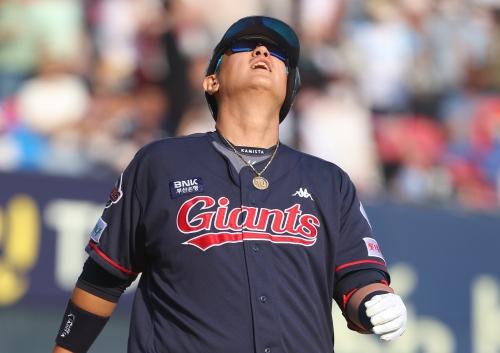 롯데 자이언츠가 올 시즌 최다 연패인 6연패에 빠졌다. 롯데 자이언츠의 부진에는 타선의 공격력이 큰 영향을 미치고 있다. 지난 22일 서울 잠실야구장에서 열린 KBO 리그 롯데와 두산의 경기에서 8회초 무사 만루 롯데 이대호가 1루수 라인드라이브로 아웃되자 아쉬워하고 있다. 연합뉴스프로야구 롯데 자이언츠가 시즌 초반 불방망이는 온데간데없고, 주전 타자들의 부상과 부진으로 5월 한 달 고난의 시기를 보내고 있다. 올 시즌 최다인 6연패와 홈 경기 7연패라는 불명예를 떠안았지만, 이를 타개할 돌파구를 찾기 힘든 모습이다. 롯데는 타선의 핵심인 한동희와 전준우, 정훈의 전력 합류와 함께 떨어진 투수진의 체력 회복이 절실한 상황이다.