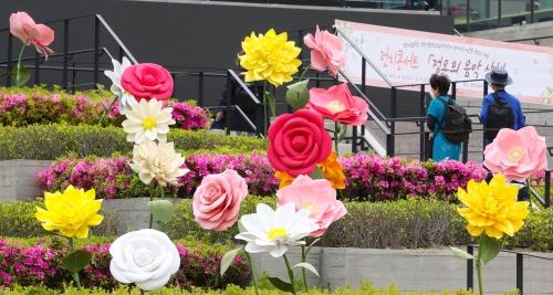 [포토뉴스] 부산역 유라시아 플랫폼 ‘자이언트 플라워’