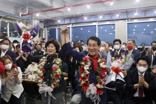 김일권 현 양산시장과의 네 번째 리턴매치에서 승리해 3선에 성공한 국민의힘 나동연(66) 당선인. 그는 “저를 믿고 지지해 주신 모든 시민에게 진심으로 감사드린다”며 “이번 승리는 저의 승리가 아닌 36만 양산시민 모두의 승리”라고 당선 인사를 전했다.