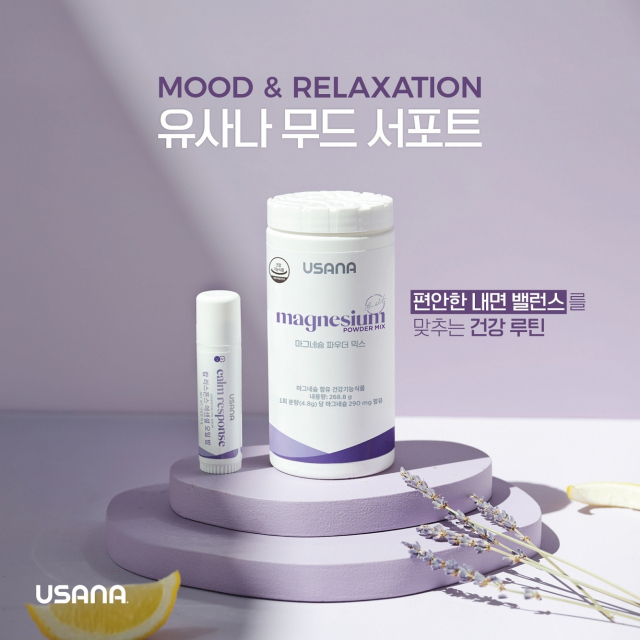 △유사나헬스사이언스코리아가 편안한 휴식에 도움을 주는 내면 건강 제품 '무드 서포트 2종'을 출시한다. '마그네슘 파우더 믹스'와 '캄 리스폰스 에센셜 오일 밤' 2종이다. 마그네슘 파우더 믹스는 차분한 기분을 느끼게 해주는 레몬생강맛의 발포형 분말이다. 신경과 근육 기능 유지에 필요한 마그네슘과 함께 부성분으로 칼륨, 레몬, 생강, 미네랄 등을 함유해 바쁜 일상 속 신경과 근육의 편안한 회복과 기능 유지를 돕는다. 격렬한 신체활동이나 운동 후에도 근육의 수축·이완 작용이 건강하게 이뤄질 수 있도록 기여한다. 천연 에센셜 오일 밤인 캄 리스폰스 에센셜 오일 밤은 즉각적인 아로마 효과를 전해 기분을 안정시켜주는 스틱형 제품이다. 차분한 향을 가져 휴식과 진정에 도움을 준다고 알려진 라벤더 오일을 비롯해 일랑일랑, 파출리 오일 등 자연을 담은 5가지 천연 에센셜 오일을 블렌딩했다. 인공색소와 인공향, 파라벤 등은 제외하고, 과학적으로 입증된 자연 유래 식물 성분과 천연 향의 오일 밤을 건강하게 담아 목, 어깨, 손목 등에 편하게 사용하면 된다. 신제품 2종이 모두 담긴 '무드 서포트 팩'이나 '에센셜 오일밤 번들팩' 구매 시 함께 사용하기 좋은 우드 롱 티스푼과 마스크 패치를 증정한다. 우드 티 스푼은 마그네슘 파우더 믹스 섭취 시 편리하게 계량이 가능하도록 1회 섭취량(4.8g)에 맞춰 제작했다.