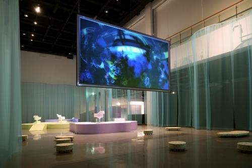 부산현대미술관 김소슬 학예연구사는 “전시 기획 단계부터 파티션 대신 천을 사용하고, 이 천을 재생해 보기로 했다”고 밝혔다. 천은 김아영 작가의 작품 ‘수리솔: POVCR’에서 공간을 구분하고, 깊은 바닷속에 있는 것 같은 전시 환경을 만들어내는 데 사용됐다. 김 학예사는 전시장 디자이너와 공사업체에 천 사용의 취지를 알리고 철거 때 조심해서 천을 떼 달라고 부탁했다.