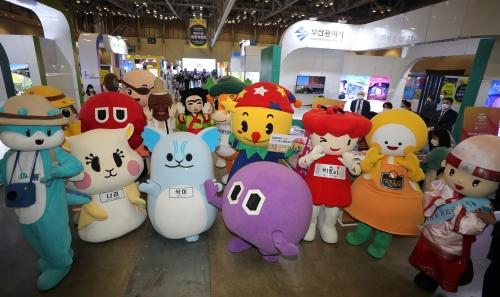 지난 주말 부산 벡스코에서 열린 ‘대한민국 대표 축제 박람회’에 참가한 각 지역의 축제 마스코트들. 이재찬 기자 chan@제2회 대한민국 대표 축제박람회가 5일 벡스코에서 성황리에 막을 내렸다.