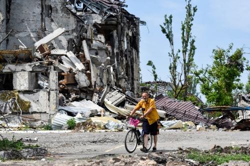 5일(현지시간) 폐허가 된 마리우폴의 거리를 한 시민이 자전거를 끌고 지나가고 있다. 타스연합뉴스러시아의 무차별 폭격으로 폐허가 된 우크라이나 남부 항구도시 마리우폴에서 콜레라 유행이 이미 시작됐다고 우크라이나측이 밝혔다. 그동안 우크라이나 마리우폴 당국은 러시아의 공격으로 상하수도 시스템이 망가진 데다, 각종 병균들이 식수원으로 흘러들어가 전염병이 확산될 것을 우려해왔다.