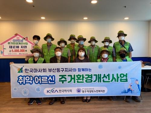 한국마사회 부산동구지사는 2일 동구 자성대노인복지관에서 취약어르신의 주거환경 개선을 위한 기부금 500만 원을 전달했다. 기부금은 주거환경 개선 사업 ‘뚝딱맨’ 참여자들이 취약어르신 가정의 LED등 교체, 방충망, 장판 수리와 도배를 할 때 재료 구입에 사용된다. 김상훈 기자