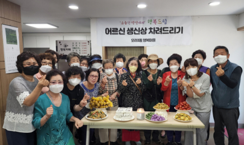 2022년 행복마을 행복더하기사업(주민공모사업)으로 추진 중인 ‘행복드림, 어르신 생신상 차려드리기’사업은 6월부터 당월 생신을 맞이한 어르신들을 초대해 손수 만든 음식으로 생신상차림 제공 및 축하 인사를 전하고 안부를 확인하는 사업이다.