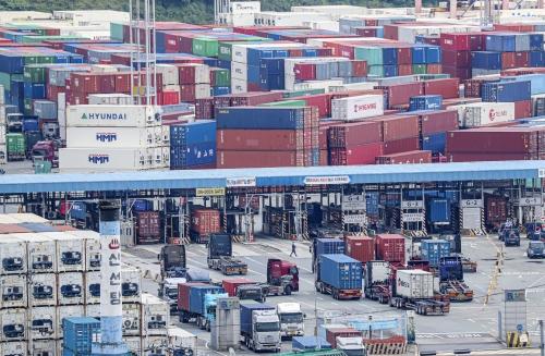 부산항 부두 내 쌓인 화물처리에 분주… 항만 기능 빠른 회복세