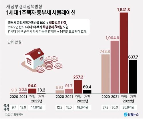앞서 정부는 올해에 한해 2022년 공시가가 아닌 2021년 공시가를 쓰고 공정시장가액비율을 추가로 조정해 2020년 수준으로 세 부담을 낮추려 했다.