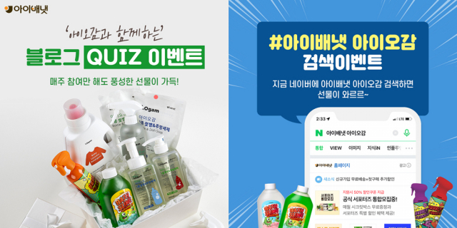 △아이배냇의 위생·생활용품 브랜드 아이오감이 6월 한 달간 '아이오감 먼스'를 운영한다. 오는 28일까지는 매주 화요일 아이배냇 공식 블로그에서 블로그 퀴즈 이벤트를 진행한다. 아이배냇 공식 블로그를 이웃 추가하고, 매주 화요일 새롭게 출제되는 아이오감 퀴즈를 맞히면 참여할 수 있다. 정답자 중 매주 5명은 추첨을 통해 아이오감의 인기 제품들을 경품으로 받을 수 있다. 주차별 정답자는 각각 1종 젖병&주방세제 액상형(본품 1개+리필 1개), 버블클렌저 2개 등을 받을 수 있다. 경품과 별개로 참여만 해도 아이배냇몰에서 사용할 수 있는 1000마일리지를 받을 수 있다. 17일부터 24일까지는 아이배냇몰에서 아이오감 검색 이벤트에도 참여할 수 있다. 네이버 포털 검색창에서 '아이배냇 아이오감'을 검색한 후 검색결과 화면을 캡처해 아이배냇몰 이벤트 페이지를 통해 접속 가능한 네이버폼에 제출하면 된다. 이벤트에 참여하면 추첨을 통해 10명은 목욕놀이 2종 세트를, 30명은 베이비 섬유세제(리필)를 받을 수 있다.