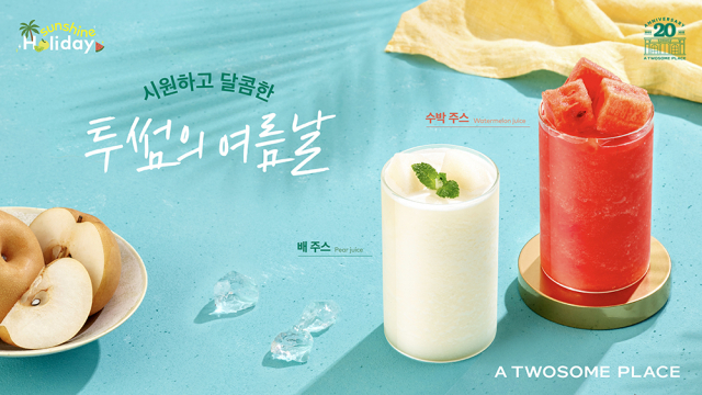 △투썸플레이스가 시원한 과일 주스 2종을 출시한다. 높은 수분 함유량과 당도를 자랑하는 국내산 수박과 배를 활용해 무더위와 갈증 해소에 도움을 줄 시원하고 달콤한 주스다. 달콤한 맛과 시원한 과즙 등 과일 본연의 풍미를 직관적으로 느낄 수 있도록 단일 과일을 활용한 홈메이드 스타일 주스로 구성했다. 2016년 첫 출시 이후 매년 판매 기록을 경신 중인 투썸의 여름 시즌 대표 음료 수박 주스가 돌아온다. 여름철에만 맛볼 수 있는 높은 당도의 고품질 국내산 수박을 통째로 갈아 만든 슬러시 타입 음료로 달콤하고 시원한 맛을 자랑한다. 아삭한 수박 조각이 듬뿍 올라가 마시는 재미를 더한다. 배 주스는 국내산 배를 넣어 갈아 만든 음료로, 배 특유의 시원하고 달달한 맛이 일품이다. 남녀노소 누구나 좋아하는 달콤하고 시원한 배의 맛과 향을 그대로 담아 여름날 갈증 해소에 제격이다.