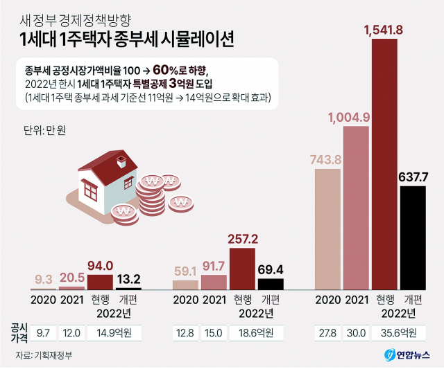 1세대 1주택자의 재산세와 종합부동산세 부담이 2020년 수준으로 줄어든다.