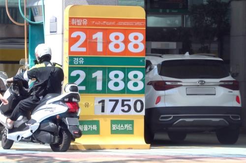 휘발유 가격도 지난 18일 L당 2104.63원으로 경유와 하루 시차로 2100원 선을 돌파한데 이어 19일(오후 4시 기준) 전날보다 2.90원 올라 L당 2107.53원으로 집계됐다.
