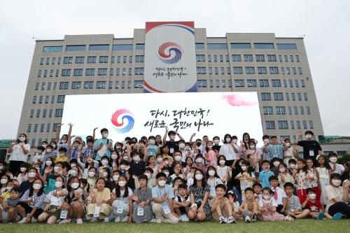 [포토뉴스] 용산 대통령실 앞에서 어린이와 ‘찰칵’