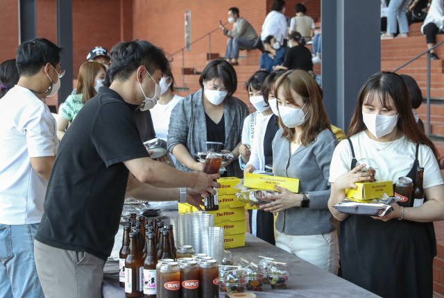 밀락더마켓에서 열린 '코로나 최전선에서 싸운 의료진을 위한 힐링 이벤트' 행사 장면. 김종진 기자 kjj1761@