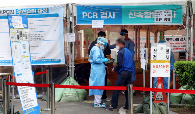 한덕수 국무총리가 지난 17일 정부 서울청사에서 주재한 코로나19 중앙재난안전대책본부 회의에서 ‘코로나19 확진자의 7일 격리 의무 4주간 연장’을 발표했다. 사진은 최근 부산 부산진구보건소 선별진료소 모습. 부산일보DB