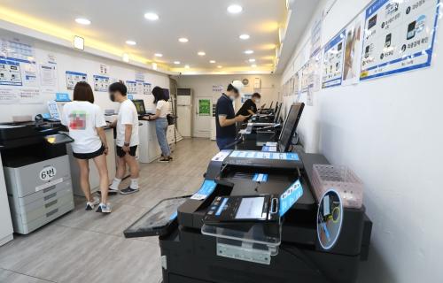 코로나19를 거치면서 부산지역 대학가 상권에서 가장 두드러지게 등장한 무인점포는 무인 복사가게다. 전공·교양 서적이나 필기노트, ‘족보’를 암암리에 복사해 사용했던 예전 대학가 풍경은 사라진 지 오래다. 인쇄·복사·제본까지 맡았던 대학가 터줏대감 복사가게들은 태블릿PC나 노트북을 활용한 디지털 필기 문화가 확산하고, 저작권의 중요성이 커지면서 자취를 감추고 있다. 사라지는 일부 복사가게는 무인 복사점으로 바뀌고 있다. 대부분 24시간 운영되는 데다 신용카드 사용이 가능해 편의성이 높다는 점에서도 대학생들 사이에서 무인 복사가게는 인기가 높다.